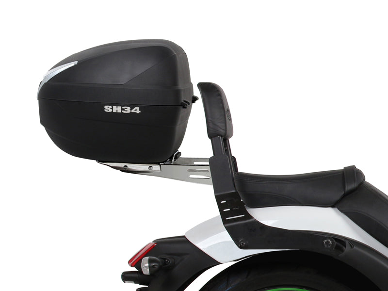 A universal chrome-finished top case mounting kit designed to attach SHAD top cases to motorcycles equipped with a SHAD sissy bar.